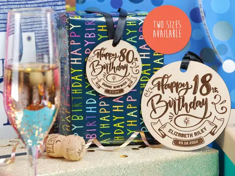 A "Happy 80th Birthday wooden gift tag" and keepsake all in one! Great to hang around the neck of a bottle or - raise the bar - and adorn that extra special gift with an extra special touch.