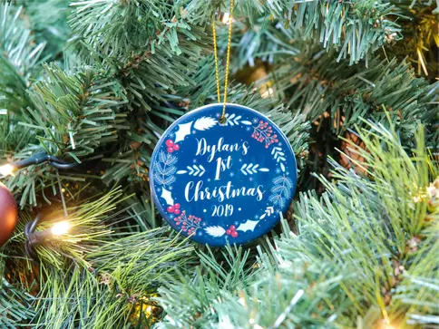 Your baby's first Christmas is such a memorable one; celebrate and remember it in style with this personalized Christmas ornament.